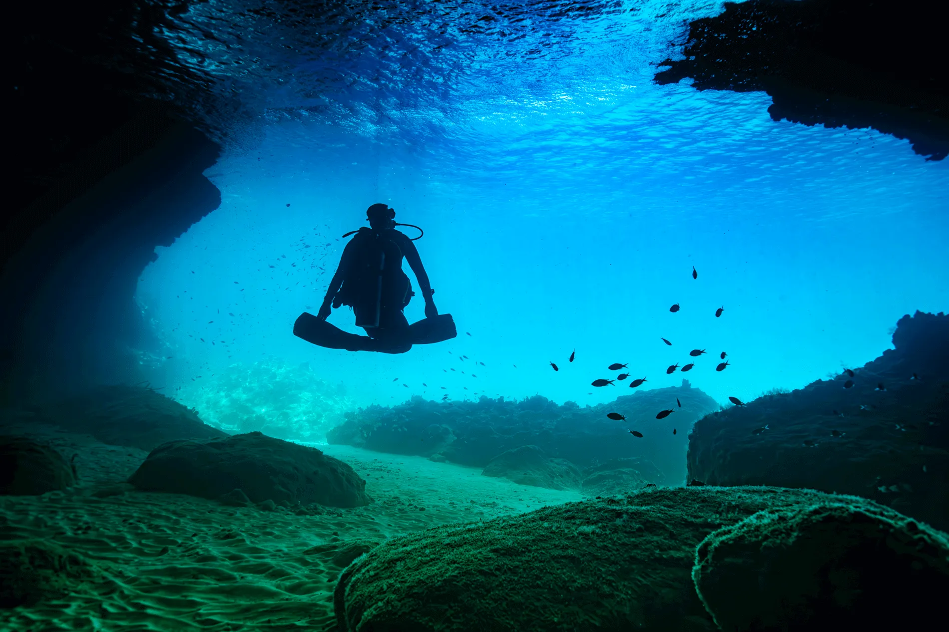 Swim and snorkel inside the stunning Blue Room Cave